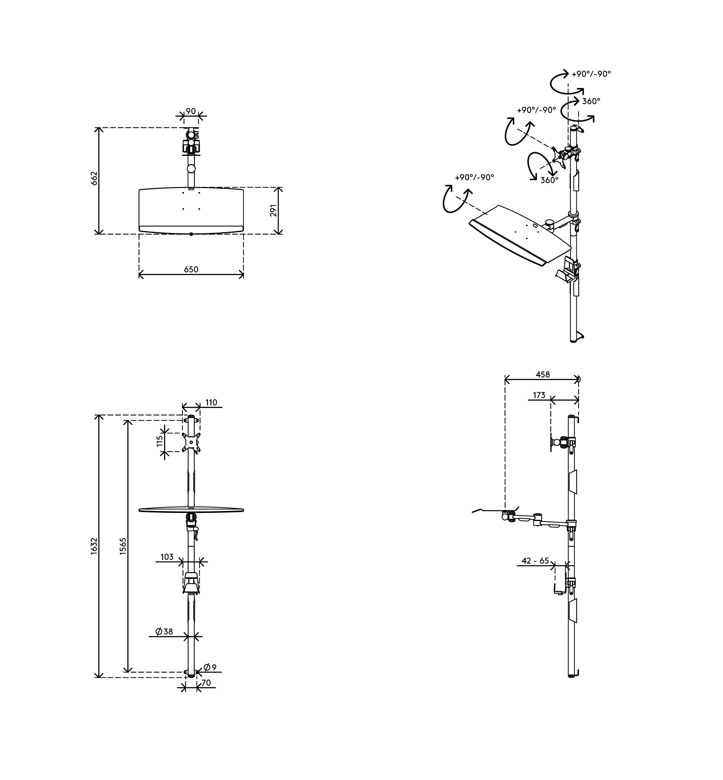This wall-mounted workstation mounts a PC and monitor and has a platform for a keyboard and mouse. It creates a space-efficient data entry point for areas with limited room. All parts are height adjustable with a convenient clamp lever, so anyone can alternate between sitting and standing without difficulty.