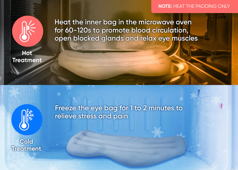 Suffering from dry eyes? Our eye experts see patients complain about this all the time. The glass bead holder in our weighted eye mask can be heated and cooled for eye therapy. When warmed, the eye mask can be used to relax the eye area and open up any pores to allow oils from the eyelid glands to lubricate the eyes. When cooled, the mask can reduce inflammation and puffiness around the eyes.