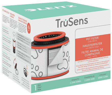 Breathe cleaner air with a filter that helps eliminate pet dander & odours. This combination filter has 3 levels of filtration formulated specifically to combat pet odours, dander, pet hair and dust. The all-in-one filter system combines a washable prefilter, a HEPA filter and a 2-layer carbon pellet filter. In addition to common household allergens and pollutants, this filter drum captures 99.97% of airborne pet dander. The filter drum is at the core of purifying your air. To keep your air purifier performing at its best, it’s recommended to replace the HEPA filter drum every 12 months (depending on usage). Compatible with all Leitz TruSens Z-2000 / Z-2500 Medium air purifiers.