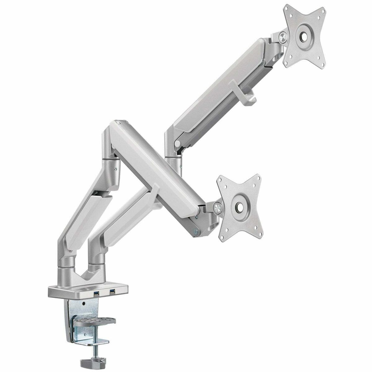 W&E GU70-series Premiums Gas Spring 17″-32″ LCD Dual Monitor Arm w/ Quick-release VESA, 90° Rotation Stop, USB3 Ports | Silver